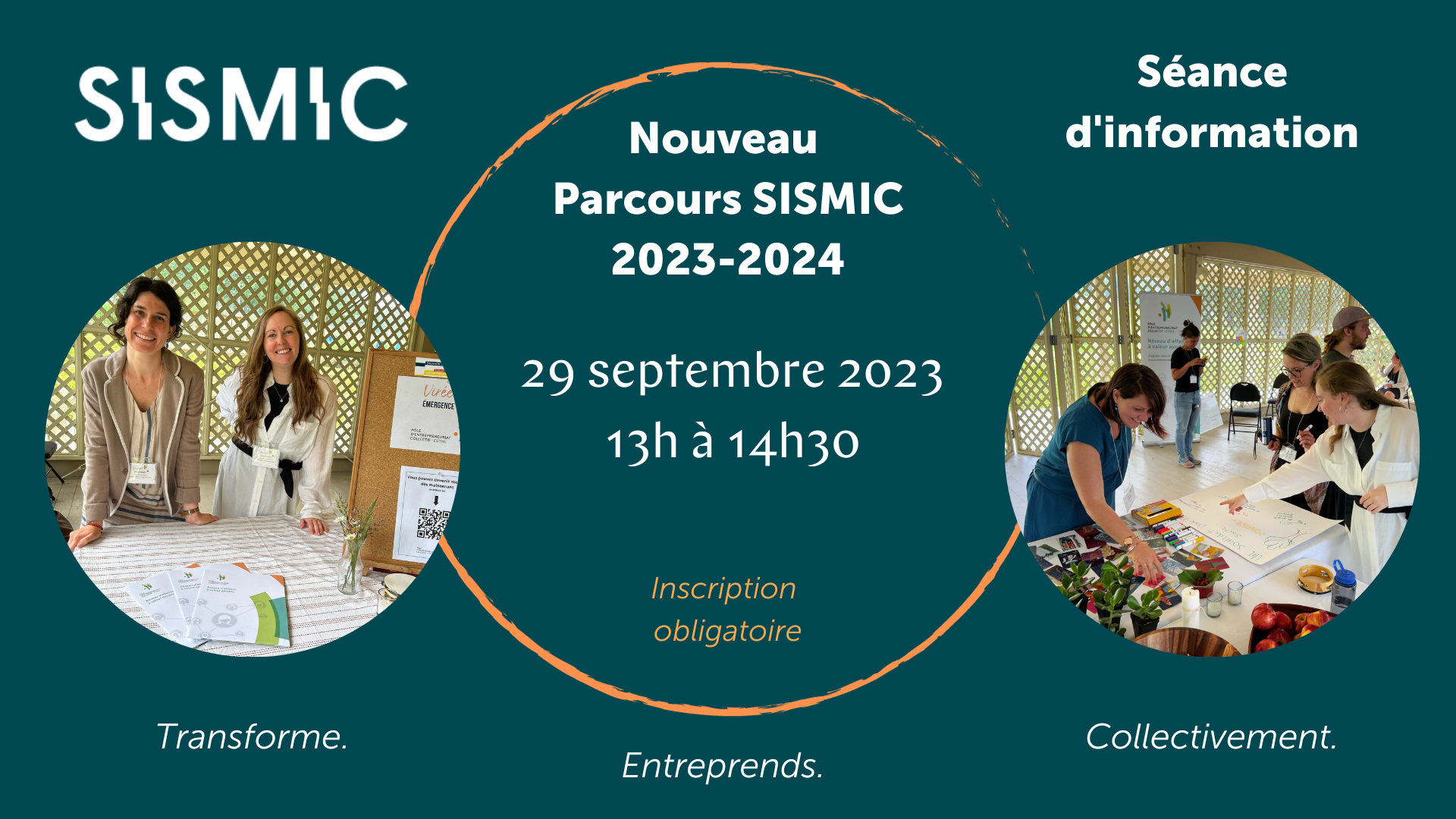 C’est le temps de s’inscrire à la rencontre d’information pour le nouveau parcours SISMIC 2023-2024! Un événement à ne pas manquer si vous êtes intéressé par le modèle d’affaire de l’économie sociale et que vous souhaitez créer une entreprise collective.